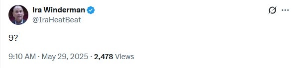 熱火隊記Ira Winderman在線吃瓜:“(只得到)9分?”