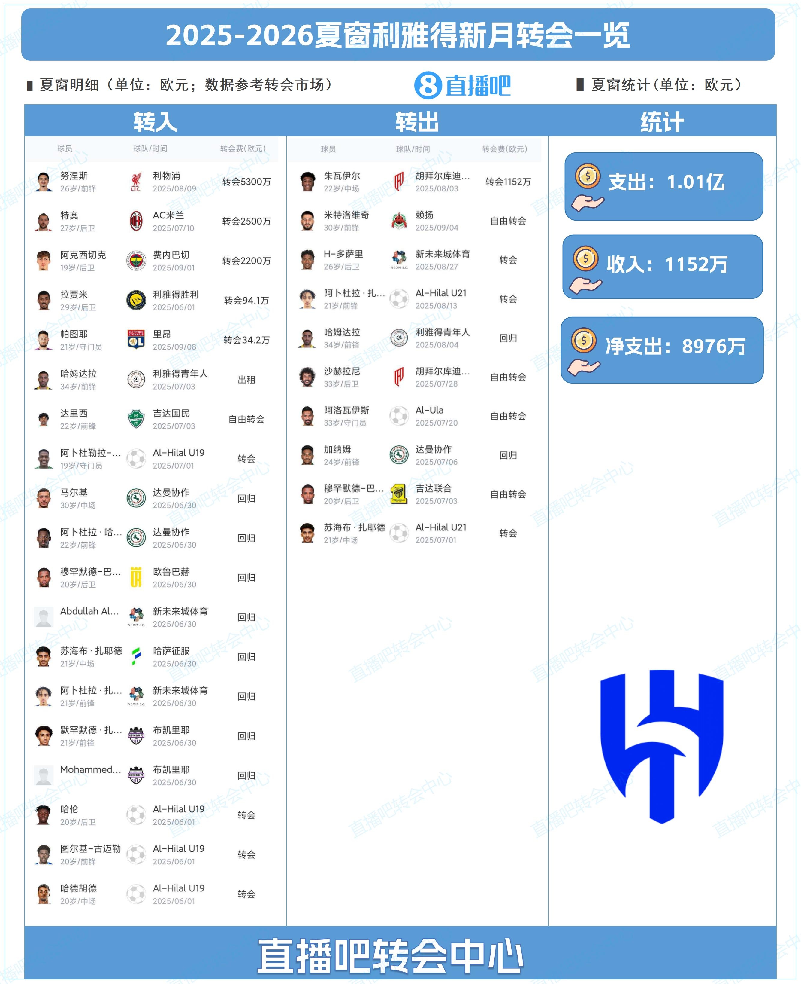 為吧友們總結(jié)了利雅得新月今夏的轉(zhuǎn)會(huì)操作,吧友們能打幾分?